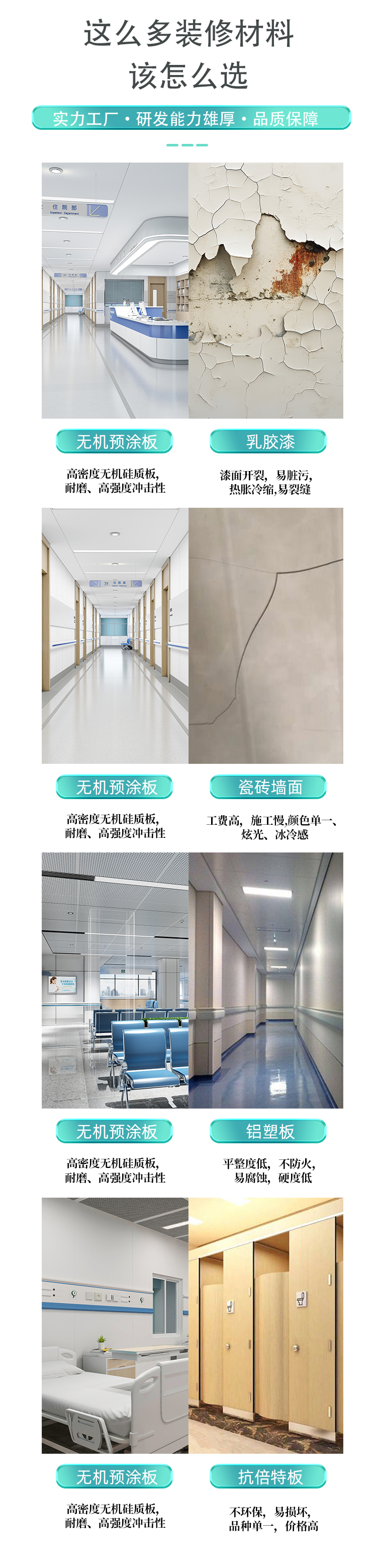 无机预涂板:以无石棉硅酸钙板等为基材,不含有害物质,如甲醛、苯等,环保等级高,对人体和环境友好,使用过程中不会释放有害气体.