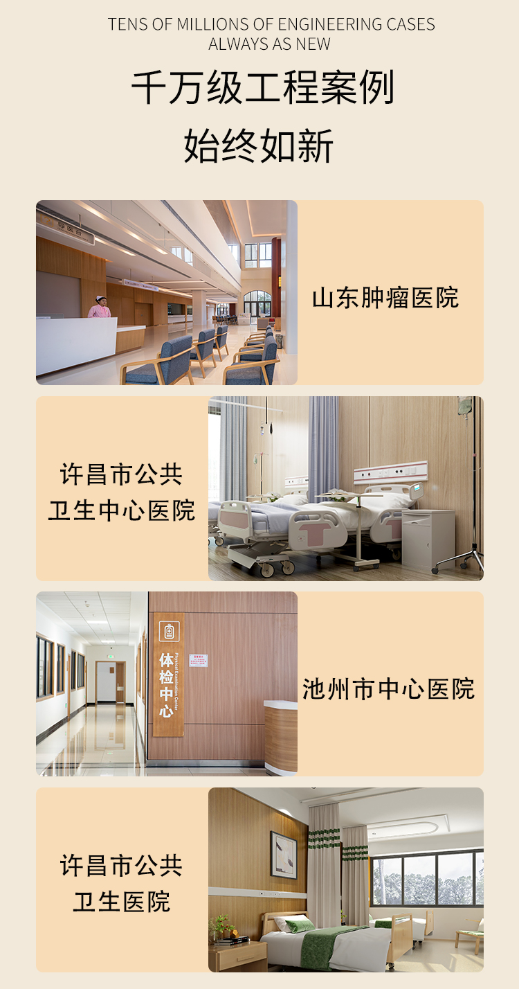 其A级防火特性和易于清洁的特性,特别适合医院这种高洁净度环境。
