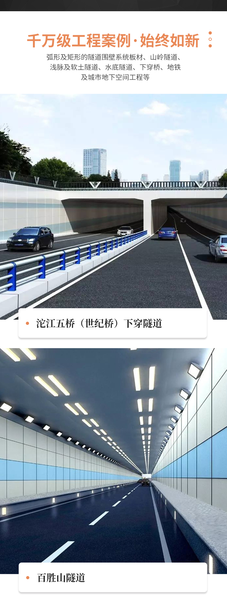 首先,从应用场景来看,隧道装饰板广泛应用于公共交通设施的多个关键区域。在地铁和火车站的站台层、站厅层以及连接通道的墙面,隧道装饰板提供了超越原始混凝土或喷浆表面的解决方案。它们被安装在结构墙体外部,形成一个新的可见层面。在部分隧道段,特别是靠近车站或行车速度较低的区域,为了改善视觉环境和便于维护,也可能采用装饰板。这些应用场景的共同特点是人流量大、环境特殊(如地下、湿气、震动等),对材料的性能提出了较高的要求。