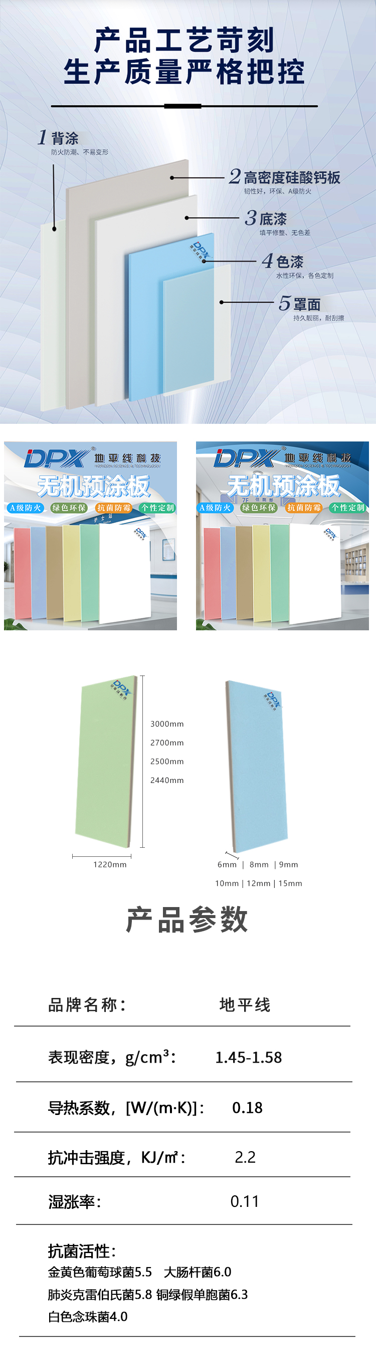 实验室中,酸、碱、有机溶剂等各类化学物质频繁使用,它们的挥发和溅落对墙面、天花板及其他表面材料构成持续的侵蚀威胁。长期暴露于这些化学品之下,许多传统装饰材料,如普通涂料、石膏板等,容易出现褪色、变质、鼓泡、脱落乃至结构性损坏,不仅影响美观,更可能产生有害物质,威胁人员健康,并增加维护成本。无机预涂板之所以能在化学腐蚀面前展现出良好的抵抗力,得益于其材料构成和制造工艺。其基材通常为纤维增强硅酸钙板或类似的高密度无机板材,本身就具备良好的稳定性。更关键的是其表面的预涂层,这层致密的无机涂层,通常采用环保型无机树脂或矿物颜料与特殊助剂结合而成,经过高温固化处理后,形成了一层高度惰性的非渗透性保护膜。这层无机预涂层呈现出良好的化学惰性,不易与实验室常见的各类酸、碱、盐溶液及有机溶剂发生化学反应。其表面孔隙率微乎其微,有效阻止了化学物质的渗透和侵蚀,确保了板材内部结构的完整性。即使发生意外泼溅,也能够通过简单的擦拭轻松去除,不留下痕迹,不影响板材性能。这种强大的耐化学腐蚀能力,延长了实验室材料的使用寿命,减少了频繁更换和维修的必要,为科研工作的持续进行提供了坚实的物质保障。