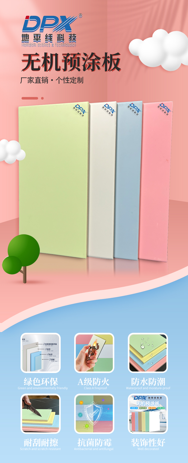诊疗区,是医院装修标准严苛的区域,直接关系到医患安全与诊疗质量,无机预涂板凭借性能,成为该区域的“安全屏障”。手术室、ICU等无菌区域,对墙面、顶面的洁净度、抗菌性、防火性有着近乎苛刻的要求,无机预涂板采用高密度无机基材,表面致密无孔,不给细菌、污渍留藏身之所,有效抑制金黄色葡萄球菌、大肠杆菌等常见致病菌滋生,降低院内交叉感染风险。同时,板材防火等级可达A级不燃标准,遇火不产生有毒烟雾,契合医院消防安全的严苛要求,为医患疏散争取宝贵时间。此外,无机预涂板具备优异的化学稳定性,长期擦拭不褪色、不起皮、不粉化,始终保持表面平整洁净,无需频繁翻新维护,大幅减轻后勤压力。为手术室、ICU等区域筑牢了无菌安全防线。
