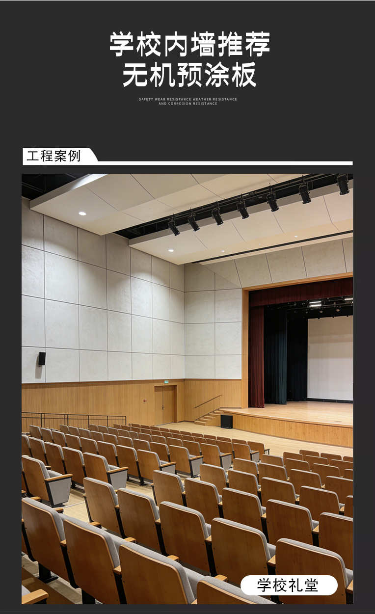 无机预涂板已广泛应用于多地中小学、幼儿园的新建与改造项目中,成为校园建设的 “标配材料”。在教学楼,它守护着孩子的课堂时光;在楼梯间,它筑牢了生命疏散的通道;在宿舍,它陪伴着孩子的休息时刻;在实验室,它抵御着潜在的火情风险。每一块板材,都是对校园安全的郑重承诺;每一处应用,都是对家校信任的用心回应。