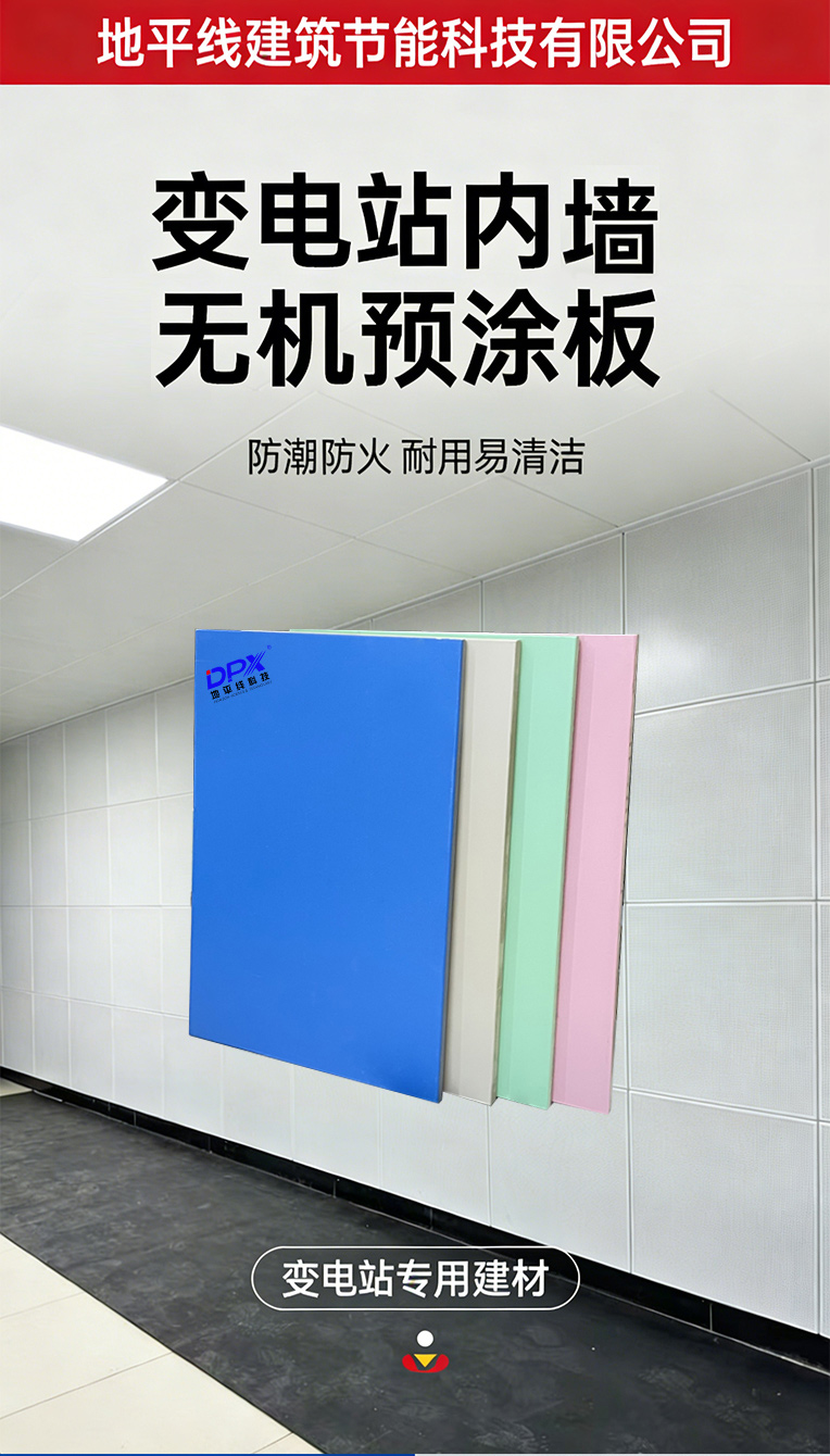 从长效运维来看,无机预涂板践行全生命周期低碳理念。板材拥有A级不燃防火、防潮防霉、耐酸碱腐蚀、抗老化、耐候等多重优异性能,能够适配变电站室内潮湿、室外温差大、沿海地区盐雾侵蚀、工业区粉尘污染等各类严苛环境,使用过程中不易变形、不易破损、不易积尘,日常清洁只需简单擦拭即可,无需频繁翻新、维修。其使用寿命长达15-20年,远高于传统涂料、彩钢板等材料,避免了后期反复维修、更换带来的资源浪费与环境污染,实现一次施工、长期稳定使用,降低全周期运维能耗与碳足迹。